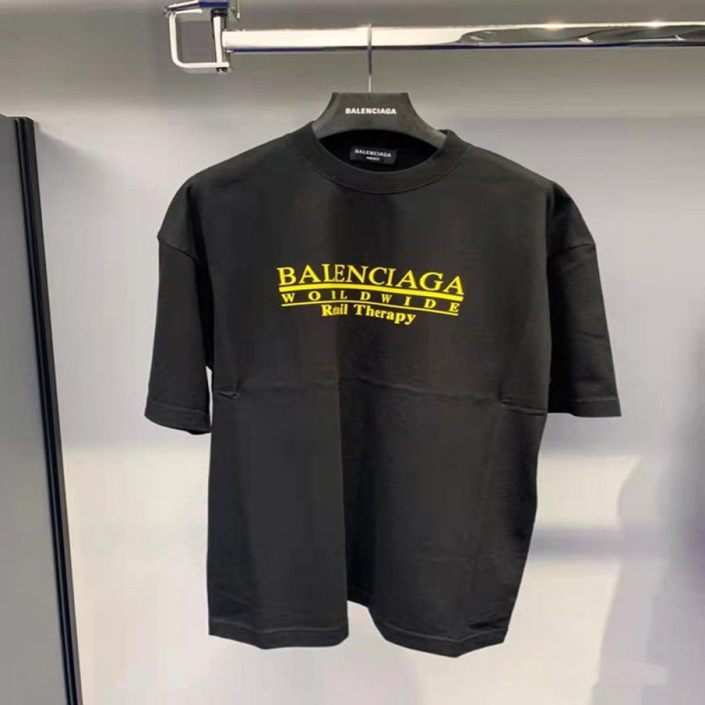 【製品名】ハイブランドバレンシアガ tシャツ ホワイトブラックコットン 肌に優しい tシャツ シンプル 高品質 半袖 tシャツ 上着 ドロップショルダー 男女兼用 tシャツ