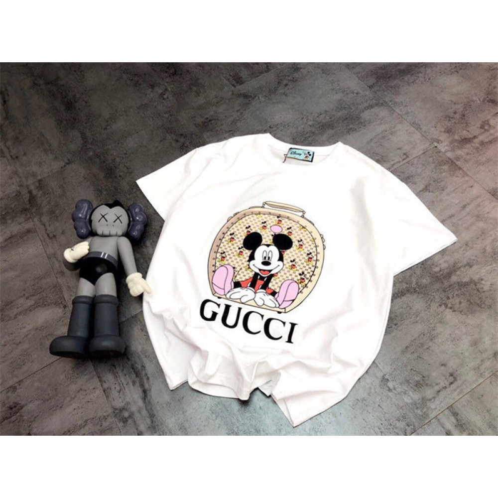 【製品名】グッチブランド tシャツ かわいいミッキーマウス柄 半袖 tシャツ コットン肌に優しいTシャツ レディースメンズ人気 高品質 丸首 Tシャツ上着 夏
