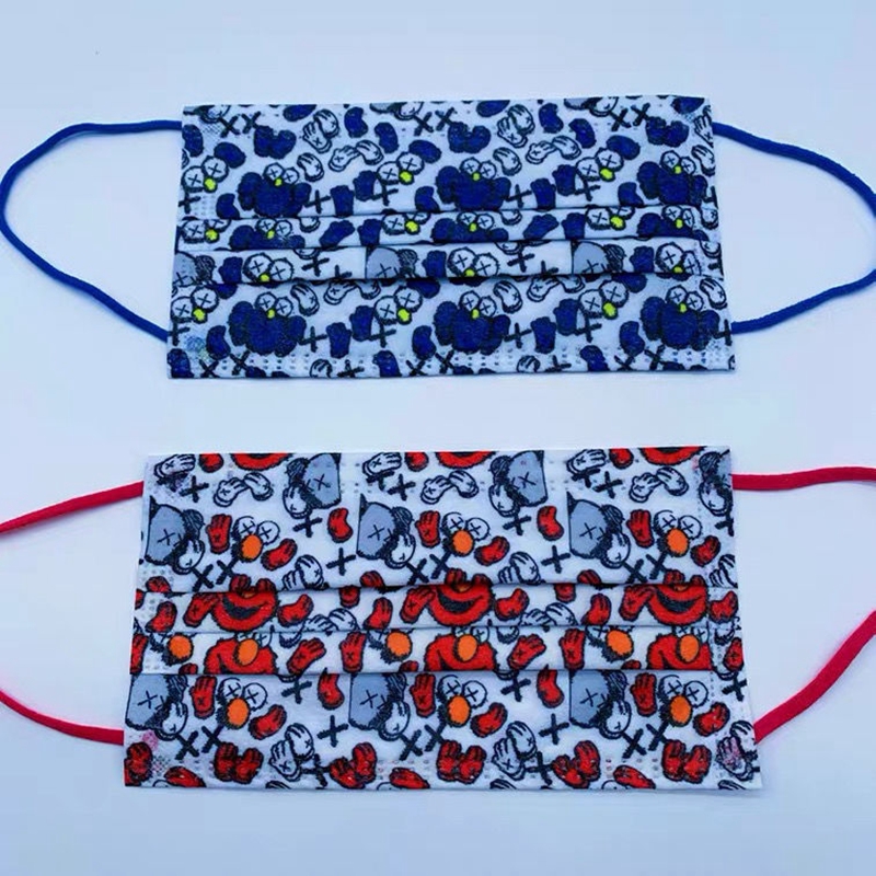【製品名】 ファッションブランドカウズ不織布マスク10枚入り高品質 使い捨てマスクパロディKaws おしゃれ 風邪 咳 清潔 衛生 PM2.5三層構造 フェイスマスク在庫あり